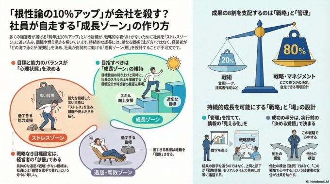 根拠なき「前年比アップ」という呪縛を解き放ち、社員が瞳を輝かせて挑戦できる「成長ゾーン」を今すぐ構築してください。