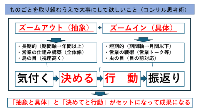 この抽象と具体を行き来する思考プロセスこそが、持続的な成長を実現するための第一歩となるのです。