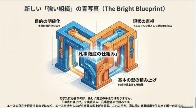 目的を明確にし、現状を直視し、基本の型を積み上げる。このサイクルこそが、エース依存から脱却した真に強い営業組織を生み出す、唯一の道です。