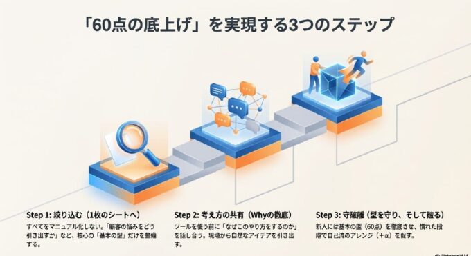 今あなたに必要なのは、新しい魔法の手法ではなく、「60点の底上げ」を実現する凡事徹底の仕組みです。