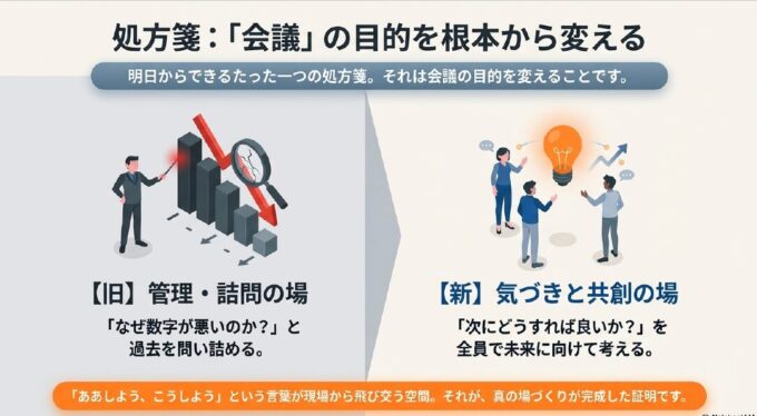 会議の目的を「管理」から「気づきの共有」に変えること。