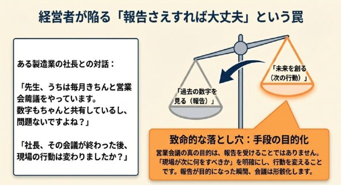 多くの経営者は、営業会議を「やっている」ことに安心してしまいます。