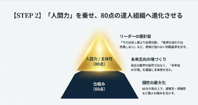 4. 【STEP 2】「リーダーシップ」で80点の達人組織へ進化させる
