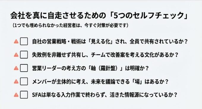 • [ ] 営業リーダーの考え方の「軸(羅針盤)」は明確か?