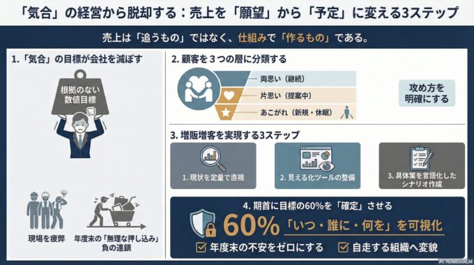 「数字を追う」だけの苦しい経営は、今日で終わりにしましょう。売上を科学的にデザインすることで、経営は「願望」から「予定」へと変わるのです。