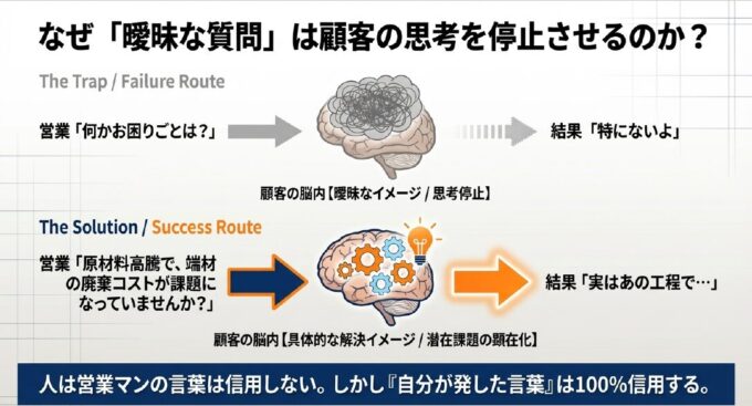 2. 【対話形式】「曖昧な質問」が、顧客の思考を停止させている