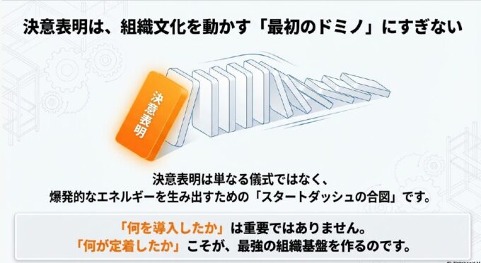 結び:決意表明は、組織を動かす「最初のドミノ」である