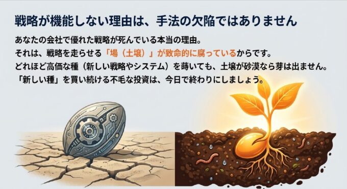 どれほど高価な種(戦略)を蒔いても、土壌(場)が砂漠なら、芽が出るはずもありません。