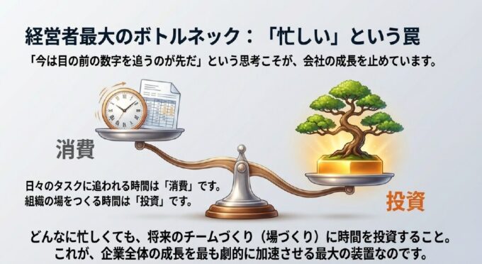 日々のタスクに追われる時間は「消費」ですが、組織の場をつくる時間は「投資」です 。