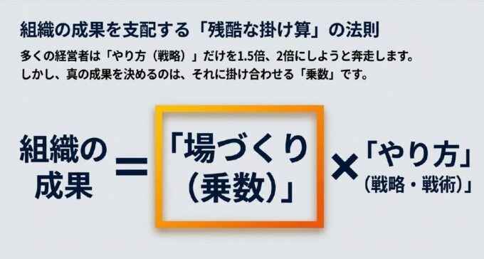 組織の成果 = 「場づくり(乗数)」 × 「やり方(戦略・戦術)」