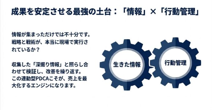この「情報」と「行動」の連携こそが、成果を安定的に高める最強の土台となります。