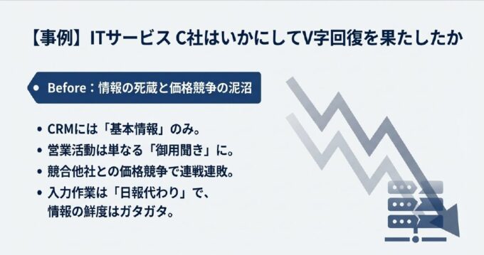 ここでは、情報の定義を変えたことで、成約率を向上させた「ITサービスC社」の事例を紹介します。