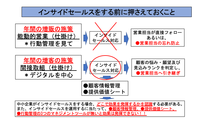 「増客の間接取組の施策」にインサイドセールスを取り入れば良いという安易なことではありません。