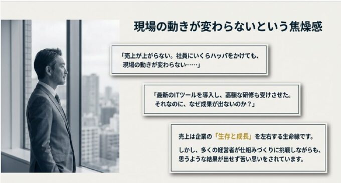 「売上が上がらない。社員にいくらハッパをかけても、現場の動きが変わらない……」