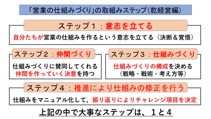 成功している企業が実践している仕組みづくりのステップは、次のとおりです。