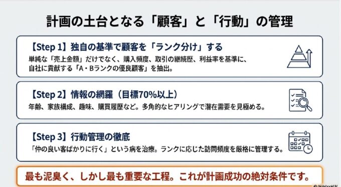 ここは最も泥臭く、しかし最も重要な工程です。この2つを確実に行うことが、計画成功の絶対条件です 。