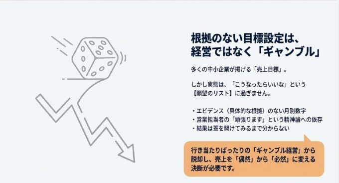 多くの中小企業経営者が「売上目標」を立てますが、その実態は「こうなったらいいな」という「願望」のリストに過ぎません 。