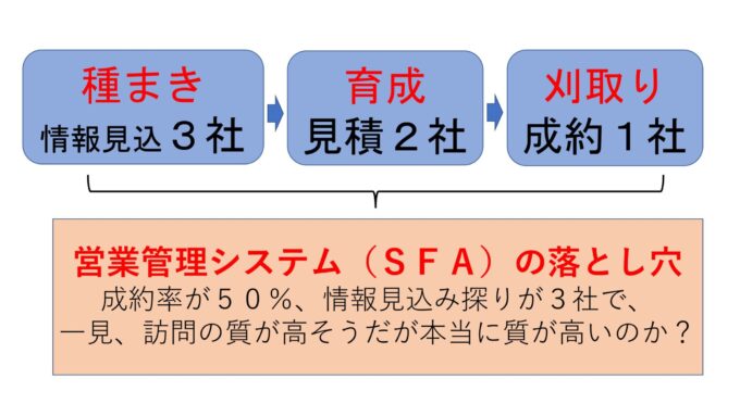 その結果、訪問回数は増えても、総売上の伸びが思ったほどではない—というジレンマが生まれ、さらに行動量を増やせとプレッシャーをかける悪循環に陥ります。