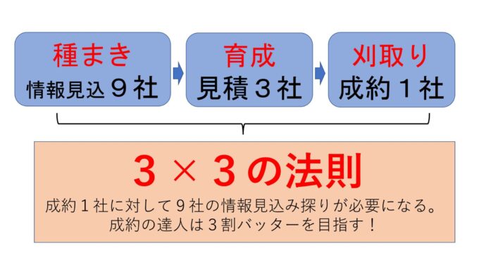 つまり、「そのうち客」を3社開拓しようとすれば、27社の種まき営業が必要になるというわけです。