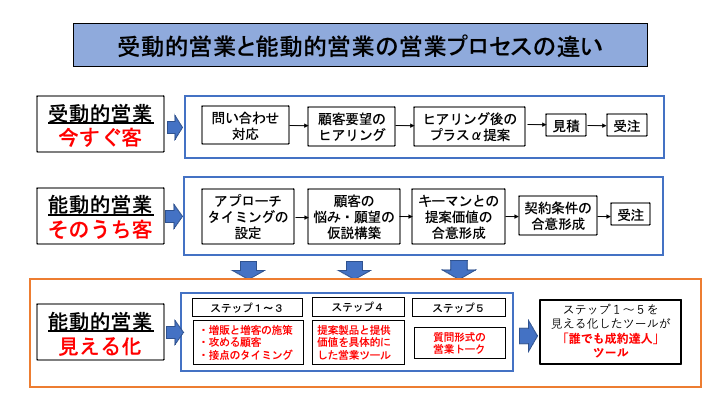 こなす仕事は、受動的営業の「今すぐ客」になります。