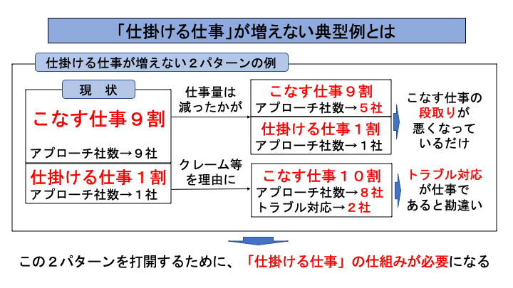 その内容は、「仕掛ける仕事」を増やそうとしても、増えない2パターンの例です。