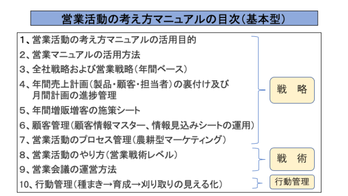 営業の仕組みがフロー図で、出来あがれば、それをどのように取り組んでいくのかというマニュアルを作ってほしいということです。