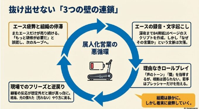 多くの中小企業の営業組織が、気づかないままこのループを回し続けています。