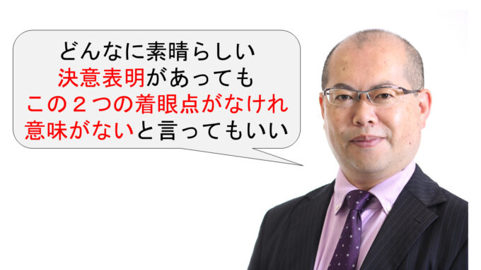 まずは、当たり前の2つの着眼点を本当に持った状態で、決意表明を考えることは出来ているのかということを再考してみてください。