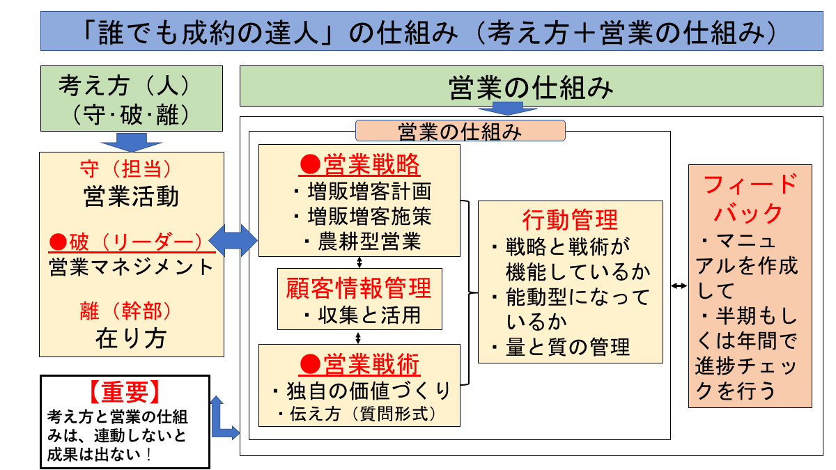 よって、当社が営業の仕組みを体系図でも良いので、文章化してくださいと言っているのはそのためです。