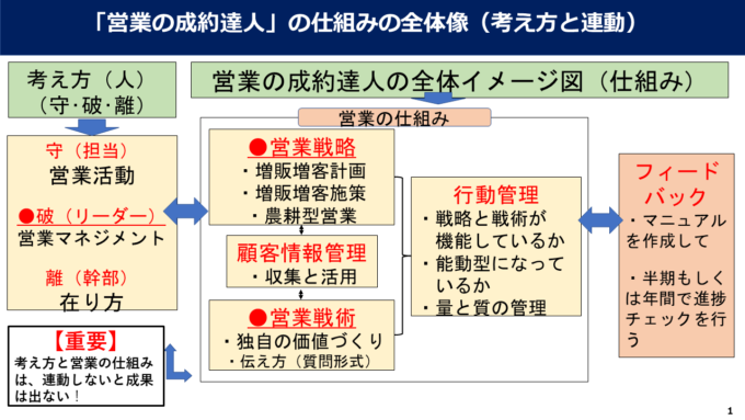 勘の良い方は気づいているかもしれませんが、当社が推奨している営業の仕組みは、営業のマネジメントと営業活動の考え方に連動する内容になっているということです。
